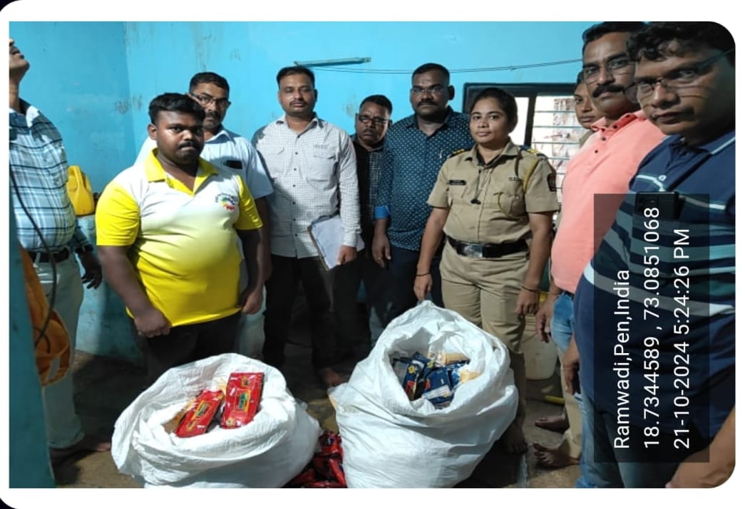 दीपक राजभर याची पंचासमक्ष चौकशी करण्यात आली असता त्याने आपले नाव दीपक रामआधार राजभर असे सांगितले. त्याच्या घराची झडती घेतली असता, महाराष्ट्र शासनाने प्रतिबंधित केलेला पान मसाला, गुटखा आणि सुगंधित तंबाखू यासारखा मुद्देमाल आढळून आला. या छाप्यात एकूण ६० हजार ४०१ रुपयांचा अवैध गुटखा आणि तंबाखूजन्य पदार्थांचा साठा जप्त करण्यात आला. या कारवाईनंतर पो.हवा. प्रकाश कोकरे यांनी पेण पोलीस ठाण्यात तक्रार दाखल केली. त्यांच्या तक्रारीवरून पेण पोलीस ठाण्यात गु.र.जि.नं. २७६/२०२४ भा.दं.वि. कलम १२३, २७४, २७५ आणि अन्न सुरक्षा मानके अधिनियम २००६ अंतर्गत गुन्हा नोंदवण्यात आला आहे.