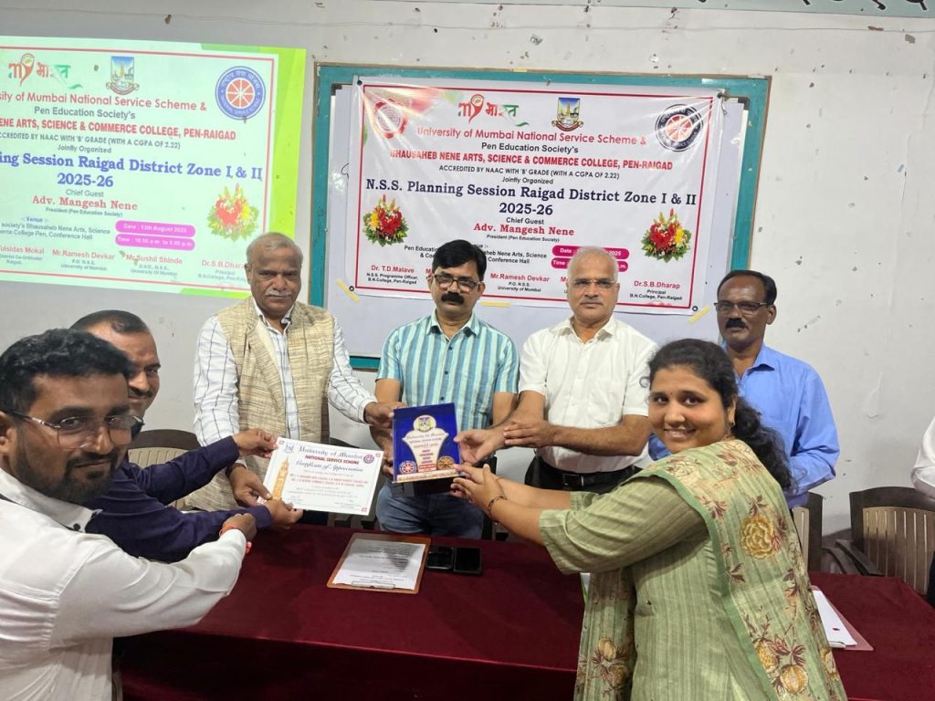 भाऊसाहेब नेने महाविद्यालयात राष्ट्रीय सेवा योजना (एनएसएस) 2025-26 या शैक्षणिक वर्षासाठी रायगड जिल्हा प्राध्यापकांच्या उपस्थितीत वार्षिक नियोजन शिबिराचे आयोजन उत्साहपूर्ण वातावरणात पार पडले.