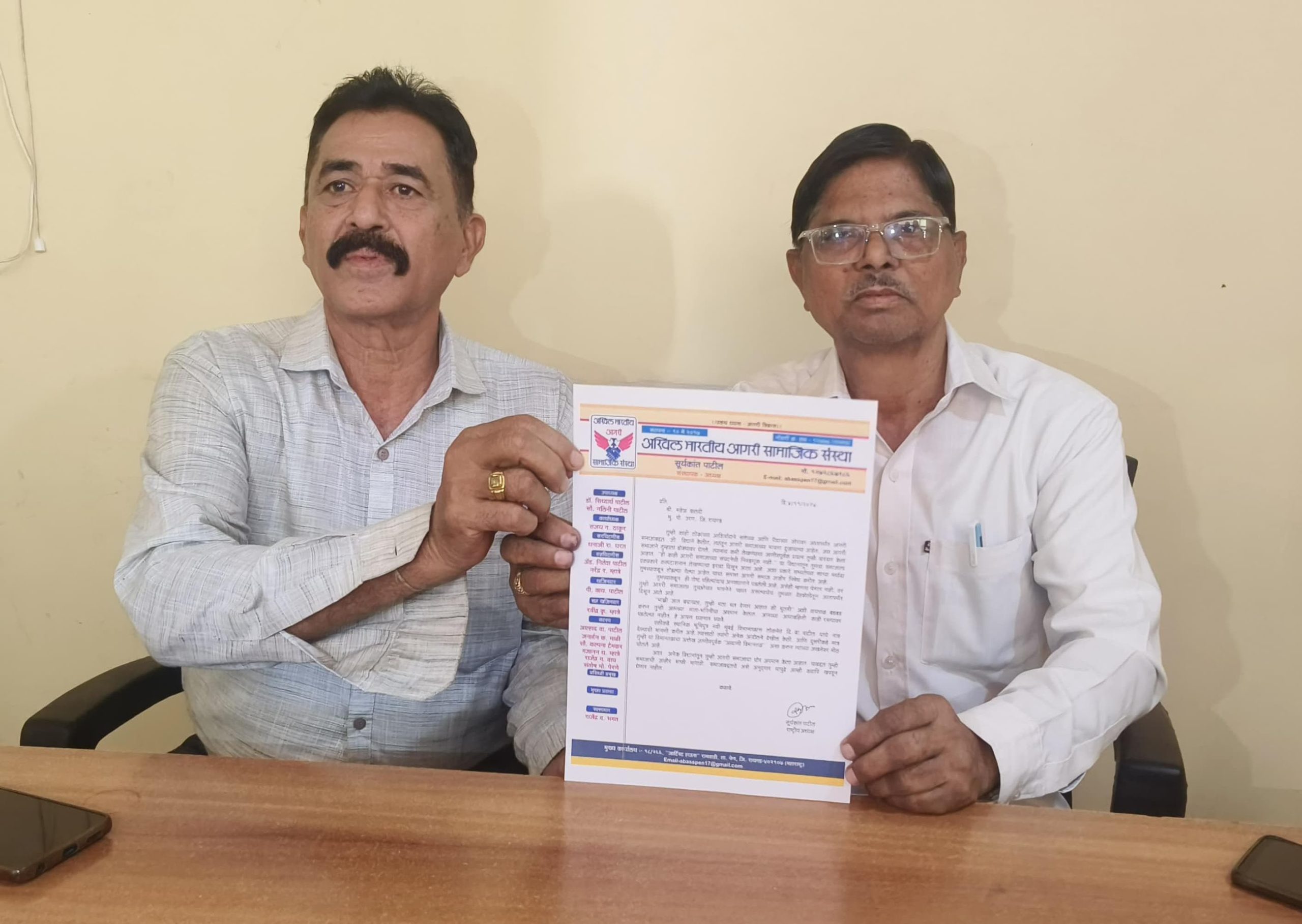 यावेळी अखिल भारतीय आगरी समाजाचे राष्ट्रीय अध्यक्ष सूर्यकांत पाटील, संघटनेचे खजिनदार पी.वाय.पाटील व पदाधिकारी उपस्थित होते.