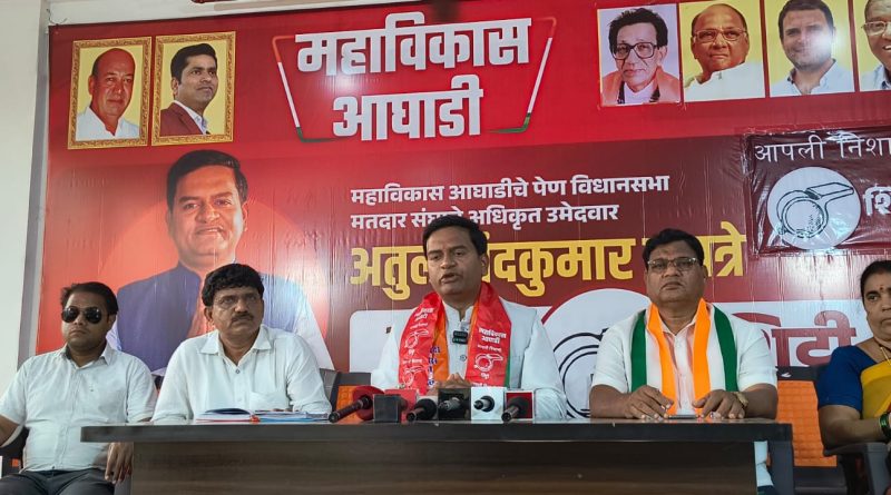 राज्यातील विधानसभा निवडणुकीच्या प्रचाराच्या तोफा थंडावत असताना शेवटच्या टप्प्यात पत्रकार परिषद घेऊन पेण विधानसभा मतदार संघातील महाविकास आघाडीचे उमेदवार अतुल म्हात्रे यांनी मी या मतदार संघातील नागरिकांसाठी विकासाच्या बाबतीत केलेल्या प्रामाणिक प्रयत्नांचाच विजय होणार असल्याची ग्वाही दिली. यावेळी उमेदवार अतुल म्हात्रे यांच्या सोबत काँग्रेसचे तालुका अध्यक्ष अशोक मोकल, महेंद्र ठाकूर, वैभव पाटील, सूर्यकांत पाटील आदि उपस्थित होते.