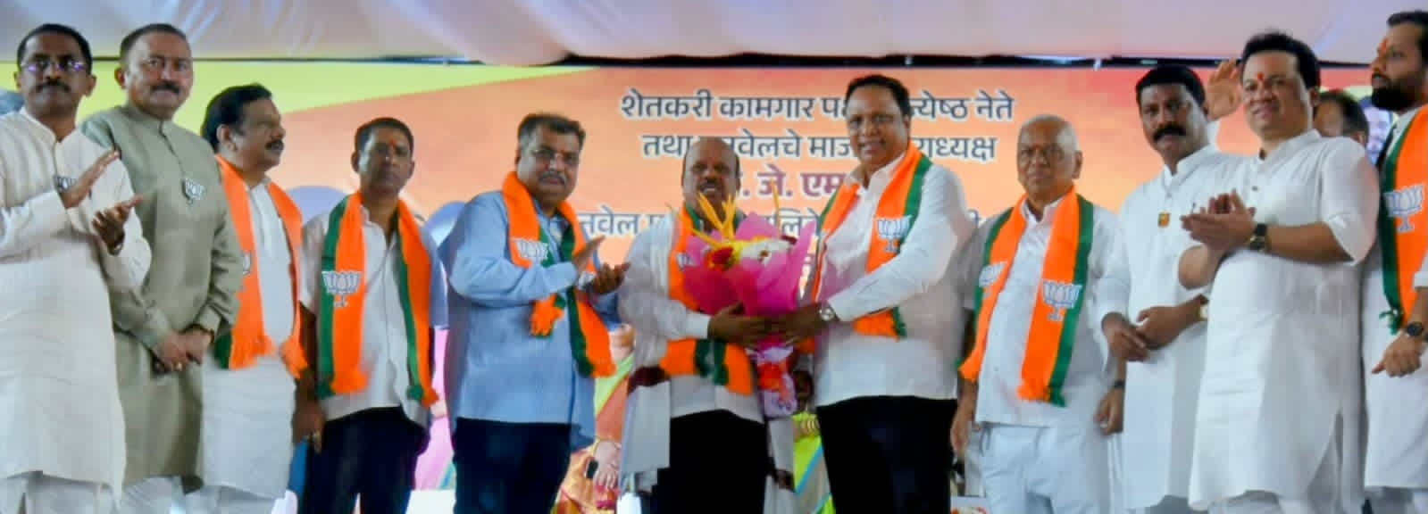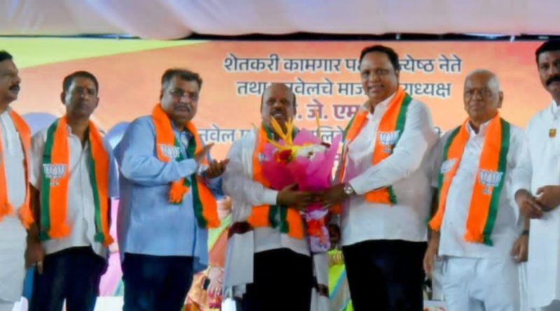 शेकापचे ज्येष्ठ व हेवीवेट नेते तसेच पनवेल नगरपरिषदेचे माजी नगराध्यक्ष जे.एम. म्हात्रे, पनवेल महानगरपालिकेचे माजी विरोधी पक्षनेते प्रितम म्हात्रे यांच्यासह पदाधिकारी, लोकप्रतिनिधींनी भारतीय जनता पक्षात जाहीर प्रवेश करत पनवेल, उरण, खालापूरसह रायगडमध्ये राजकीय भूकंप केला. लोकनेते रामशेठ ठाकूर, आमदार प्रशांत ठाकूर, आमदार महेश बालदी यांच्या पुढाकारातून हा प्रवेश झाला. पक्षप्रवेशाची भली मोठी रांग यावेळी लागली त्यामुळे रायगडमध्ये राजकीय भूकंप होत शेकापला मोठा हादरा बसला आहे. उलवे नोडमधील रामशेठ ठाकूर मैदानावर हा पक्षप्रवेश सोहळा भाजपचे प्रदेश कार्यकारी अध्यक्ष रवींद्र चव्हाण, माहिती तंत्रज्ञान व सांस्कृतिक कार्यमंत्री आशिष शेलार यांच्या हस्ते व लोकनेते रामशेठ ठाकूर यांच्या प्रमुख उपस्थितीत मोठ्या जल्लोषात संपन्न झाला.
