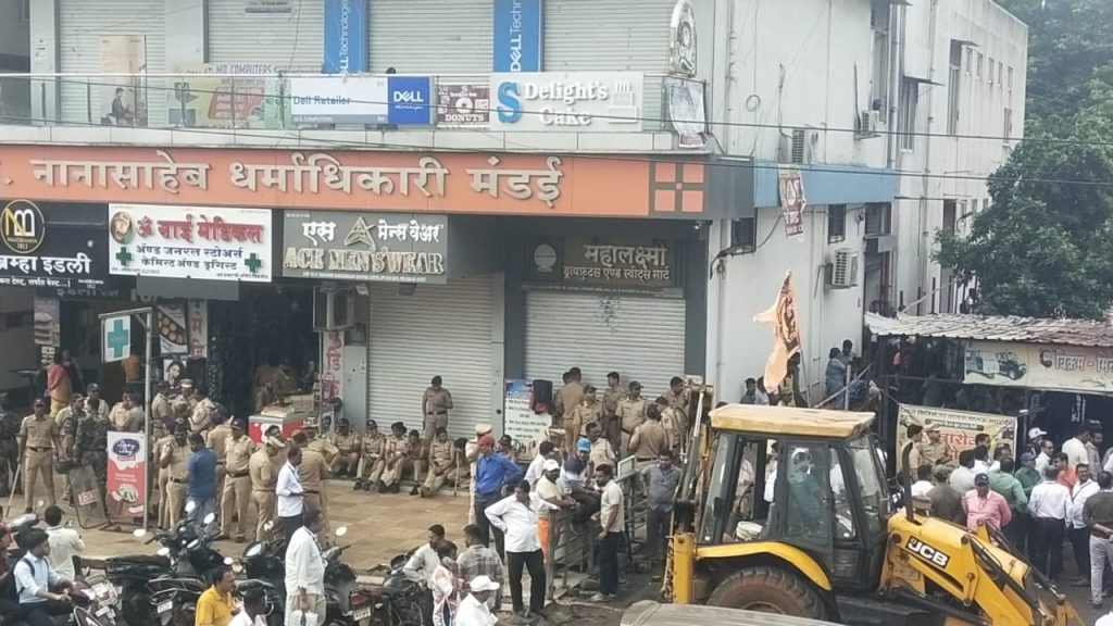 आज सकाळपासूनच पेण नगरपालिका प्रशासन व कर्मचारी मोठ्या पोलीस बंदोबस्तात व यंत्र सामुग्रीसह विक्रम स्टँडवर तोडक कारवाई करण्यासाठी सज्ज झाले होते. परंतु आमदार रविशेठ पाटील व खासदार धैर्यशिल पाटील यांच्या मध्यस्थीमुळे आजची कारवाई तूर्तास स्थिगत करणे प्रशासनाला भाग पडल्यामुळे कारवाई साठी आणलेली यंत्रसामुग्री व पोलीस फौजफाटा याना तब्ब्ल ५ तासांनी माघारी परतावे लागले.
