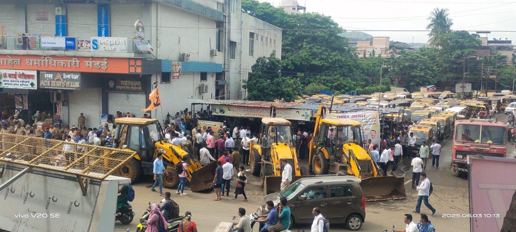 त्यानुसार आज ३ जून रोजी मुख्यधिकारी जीवन पाटील यांच्या मार्गदर्शनाखाली पेण नगरपरिषद कर्मचारी मोठा पोलीस बंदोबस्त घेऊन. जेसीबी आणि पोकलेन यंत्रसामुग्री घेऊन विक्रम स्टँडवर कारवाई करण्यासाठी गेले असता संघटनेचे पदाधिकारी व सदस्यांनी प्रशासनाने आमची भूमिका समजवून घेऊन सकारात्मक भूमिका घ्यावी अशी मागणी केली. यावेळी विक्रम चालक मालक संघटनचे जिल्हा अध्यक्ष विजय पाटील, विक्रम मिनीडोअर चालक मालक संघटनेचे तालुका अध्यक्ष कल्पेश पाटील आदी संघटनेचे पदाधिकारी यांनी आमदार रविशेठ पाटील याची निवासस्थानी भेट घेऊन हि कारवाई थांबिण्याची विनंती केली. यावेळी आमदार रविशेठ पाटील, मुख्याधिकारी जीवन पाटील, नायब तहसिलदार प्रसाद कालेकर विक्रम संघटनेचे पदाधिकारी व उपविभागीय पोलीस अधिकारी गजानन टोम्पे, पोलीस निरीक्षक संदीप बागुल यांची बैठक झाली. यावेळी आंदोलन स्थळी खासदार धैर्यशिल पाटील यांनी भेट देऊन योग्य तो निर्णय झाल्याशिवाय प्रशासन व पोलिसांनी कारवाई करू नये असे आवाहन प्रशासनाला केले.