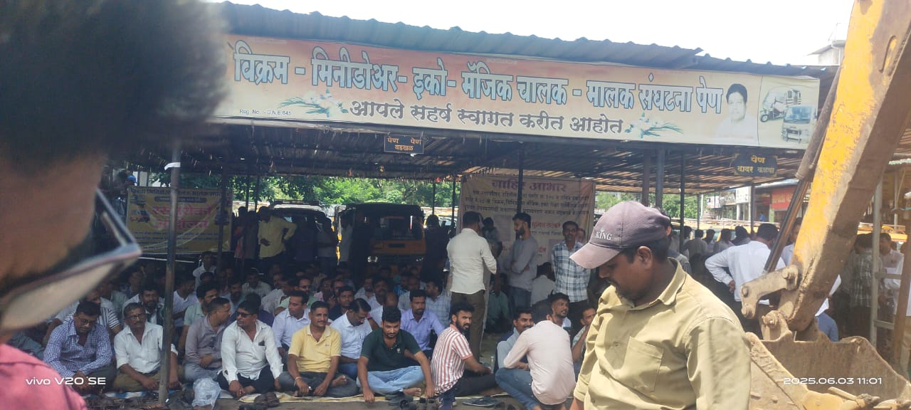 पेण नगरपालिकेने २० मे रोजी विक्रम मिनीडोअर चालक मालक संघटनेला अंतिम भुखंड क्रमांक १०० मधील विक्रम मिनीडोअरचा थांबवा हलविण्या संदर्भात २८ मे २०२५ आणि २९ मे २०२५ रोजी पोलीस बंदोबस्त येणार असल्याचे पत्र दिले होते. तसेच वाटाघाटीचे सुध्दा आमंत्रण दिले होते. यावेळी विक्रम मिनीडोअर चालक मालक संघटनेच्या वतीने पेण नगरपालिकेसमोर ठिय्या आंदोलन करण्यात आले होते.